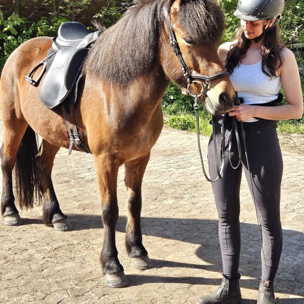 Seit der Behandlung sitze ich stabiler im Sattel und klemme nicht mehr so mit den Oberschenkeln. Die Beine liegen locker am Pferd. Außerdem musste meine Reitlehrerin mir viel weniger Sitzkorrekturen geben. Ich konnte mich mehr aufs Reiten konzentrieren anstatt nur auf meinen Sitz. Rieke hat viel Know-how und ging individuell auf mich ein – absolut empfehlenswert für jeden Reiter.
